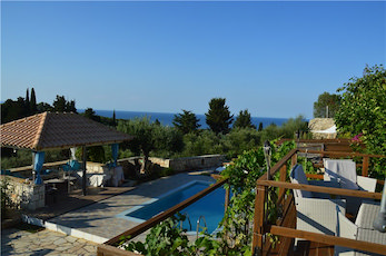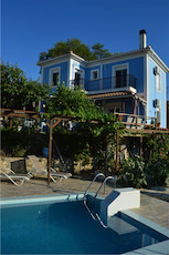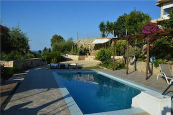 Villa with sea views, three bedrooms, three bathrooms, and a semi-complete swimming pool. The home includes central heating, A/C, and double-glazing.