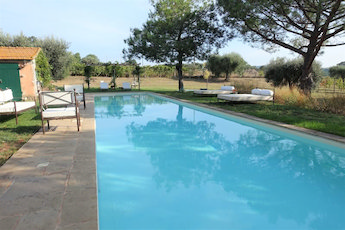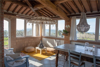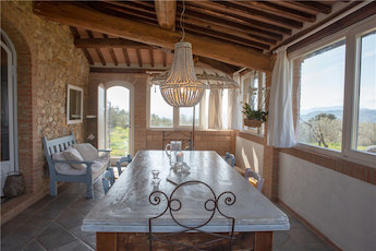 The three-story stone house is near the Terme, the sea, Rome, and Florence, providing a stunning view of the Tuscan Archipelago.