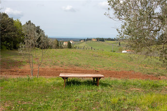 Completed in 2001 and recently restyled, a stone house sits on a hill with views of Elba Island and Corsica. The property includes an olive grove, gardens, and a modern kitchen.