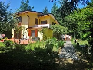 Enjoy the luxury of a villa with five bedrooms, two bathrooms, a garage, and an independent entrance. This property includes a garden, solar panels, and a wood-burning fireplace.
