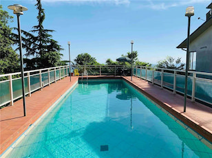 An independent section of a three-level building, this property includes a panoramic pool, solarium, living room, kitchen, veranda, chimney, gazebo, BBQ space, and deposit.