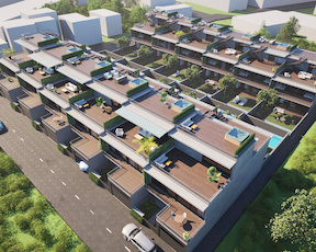 This 290 sqm terraced house in Canidelo, Vila Nova de Gaia, Porto comprises four bedrooms, a private pool, ocean view and a double garage.