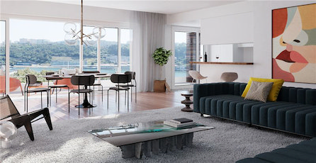The 5º Porto apartment, situated between the urban hustle and the Douro River, offers 154m2 of indoor space, complemented by an additional 18m2 balcony. It features three bedrooms and two parking spaces.