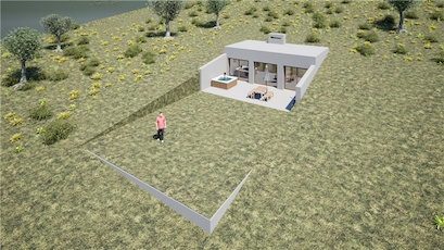 Situated on a hill, the property is ready for development with utilities and planning permissions. It overlooks a scenic village surrounded by olive farms and vineyards.