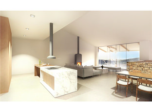 Rising three levels high, the Caniço penthouse offers an unobstructed ocean view. It features three bedrooms, three bathrooms, and three terraces.