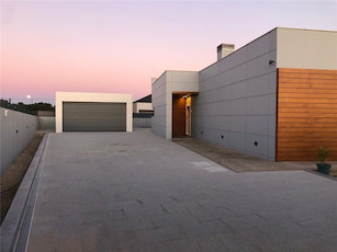 Single-storey detached villa exhibits a modern architectural design, complete with a swimming pool. It enjoys proximity to local amenities and beaches.