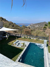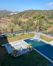 Bakraz Villas comprises a 165 m2 stone house with two bedrooms, parking, a common pool, private beach, and a private cafe/restaurant.