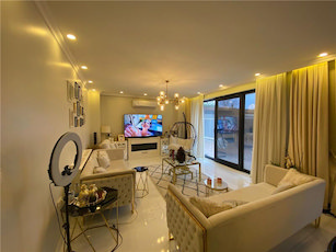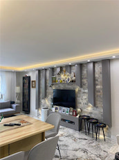 A 2+1 corner apartment covering 145 m2. It has been fully renovated and includes a lift, garage, and two balconies.